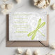 Invite a los huéspedes a su próximo boda con una invitación a la boda de la libélula verde. El diseño de la invitación presenta una libélula vibrante contra un elegante fondo de pardo gris y vid floral. Personaliza con los nombres del novio y la novia junto con la fecha y el lugar del boda. También hay material de boda adicional disponible con este diseño.
