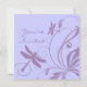 La invitación presenta los colores malva espliego y azul perwinkle con hermosas floridas y libélulas plateadas rodeando texto completamente personalizable. Área de información de RSVP disponible en la invitación, por lo que no es necesario que haya más RSVP. Pida en el papel metálico SILVER para una invitación de boda realmente silenciosa!