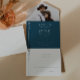 Plantilla moderna y limpia para la invitación a la boda con una línea minimalista limpia con sus iniciales. El color de fondo es azul marino.