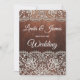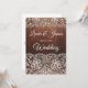 Los preciosos bordes de encaje blanco contrastan maravillosamente con un antiguo fondo de madera oscura. Perfecto para un boda de estilo rústico o rústico. Las invitaciones y las tarjetas están disponibles en una selección de opciones de forma (bordes redondeados, vieiras, etc.) y en una selección de texturas de papel. Los estilos de fuente, el color y el tamaño son personalizables. Encontrará otros diseños con muchos productos de coordinación en nuestra tienda, incluyendo invitaciones, guardar la fecha y las tarjetas rsvp, etiquetas de agradecimiento y más.