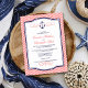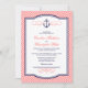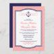 El diseño de la invitación a la boda es moderno y elegante, con un gráfico de anclaje náutico y un desplazamiento de caligrafía elegante, florece sobre un fondo de rayas diagonales de moda. Haga clic en el botón IT PERSONALIZAR para personalizar de fuentes, mueva el texto y cree su propio diseño único de invitación.