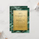 Moda Gold Emerald Green Agate Wedding Invitation presenta elegantes líneas de purpurina dorado con un patrón abstracto de greengeode esmeralda y guión de caligrafía. La sofisticada y elegante invitación a la boda.