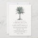 La antigua invitación a la boda de estilo playero cuenta con un ilustracion de palmera grabado en verde ocre de cazador ennegrecido, encima de los detalles de su boda en gris carbón vegetal para un toque costero de moda. Las tarjetas de invitación al marfil de color blanco pálido cambian a un patrón tejido de paja. Recomendamos imprimir este estilo en el papel Laid tradicional para una textura rica que complemente el aspecto vintage de esta suite de invitaciones.