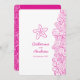 Sencillo dibujo en rosa brillante de una estrella de mar, con gráficos movimientos de olas de mar, Hermoso rosa caliente en invitaciones de bodas de playa costera blanca. Una invitación perfecta para una boda de playa, de inspiración oceánica costera o de destino marítimo. Edite estas invitaciones con su propio nombre y palabras de invitación. Diseño y dibujo de estrellas de mar y remolinos náuticos únicos de Sarah Trett. www.sarahtrett.com para www.mylittleedenweddings.com