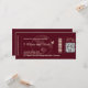 Invitación a la boda de la tarjeta de embarque - Borgoña y champán | Tarjeta de Ticket de Destino Celebra tu amor con esta invitación de bodas de cartón de borgoña y champán, con el estilo de un billete de avión. Perfecto para bodas de otoño, celebraciones de invierno o ceremonias de destino en el extranjero. Personalizable completo con sus detalles inspirados en viajes, impresos en papel premium para un acabado elegante.