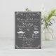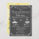 La antigua invitación a la boda en pizarra con labios y bigote. El reverso tiene una obra personalizada Tú eres mi obra de arte.