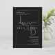 Haga una declaración audaz con esta invitación a una boda negra ultra moderna, con un marco geométrico elegante y grandes iniciales elegantes. El diseño es elegante y sofisticado, perfecto para las parejas contemporáneas que buscan una invitación minimalista pero impactante. El llamativo fondo negro realza la nitidez de las iniciales y el marco, creando una inolvidable introducción a su boda. Ideal para corbata negra, noche o bodas de la ciudad, esta invitación marca el tono para una celebración refinada y elegante.