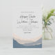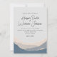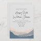 Invitación nupcial moderna con una imagen de montañas de papel azul roto.