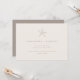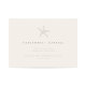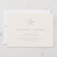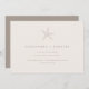 El diseño de esta invitación a la boda es una mezcla perfecta de elegancia y de ambiente de playa. El principal atractivo de la invitación es un pequeño motivo de estrella blanca que se sitúa en el centro del fondo marfil. El motivo de la estrella de mar está diseñado de forma compleja y le da un toque natural a la invitación. El color crema del fondo es cálido y acogedor y da la tónica a un boda adinerado junto a la playa. La tipografía utilizada en este diseño de invitación es de color marrón clásico, lo que añade un toque de sofisticación y asegura que el texto sea fácil de leer. El estilo de letra utilizado es limpio y moderno, creando un aspecto atemporal que nunca se desvanecerá.