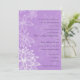 Las flores gráficas delineadas en blanco contra una púrpura bonito lila hacen una hermosa declaración sobre esta invitación a la boda. Al revés se repite una flor de lenguado. Una mirada sentimental para un día especial. Disponible en colores alternativos con productos coincidentes.