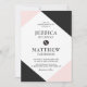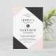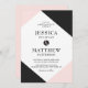 Elegante y moderna invitación a las bodas con acentos geométricos rosa y gris oscuro. Esta moderna invitación será perfecta para cualquier tema o temporada de boda. Los elementos coincidentes están disponibles.