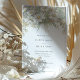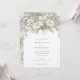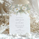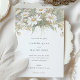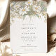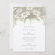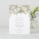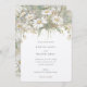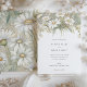 Invite a sus huéspedes a su boda con esta invitación rústica de diseño. La parte delantera de la tarjeta contiene un ilustracion delicado y detallado de margaritas blancas en flor, acentuadas con hojas verdes suaves y centros amarillos cremosos. La tipografía es elegantemente sencilla, complementando perfectamente el diseño de inspiración natural. La parte trasera de la tarjeta continúa el tema con un impresionante patrón de margarita de página completa, añadiendo un toque de belleza intemporal. Esta invitación es ideal para las parejas que planean un boda de temática rústica y natural, que ofrece un ambiente sereno y romántico con su suave paleta de colores blancos, verdes y amarillos.