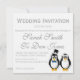 Gráficos de pingüinos bodas, impresos en una invitación casera personalizada, para enviar a los invitados todo el día.