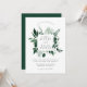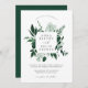Nuestra invitación a la boda de Wild Forest enmarca tus nombres con un elegante borde cuadrado de color de agua exuberante en tonos invernal de bosque y verde cazador. Un enfoque moderno y elegante de la tendencia botánica para bodas de invierno o primavera en verde y blanco fresco.