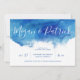 Invitaciones a bodas imprimidas por personalizados a precios asequibles con un fondo abstracto de color azul acuático y una tipografía moderna de estilo con letras a mano. Personalízalo con tus nombres y detalles de la invitación a la boda. Utilice las herramientas de diseño para cambiar los tipos de letra y los colores del texto o añadir texto y fotos adicionales para crear un diseño único de tipo. Un diseño elegante y divertido, perfecto para una boda en la playa.