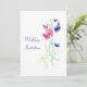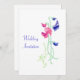 Invitación a la boda de bonito con dulces rosados y azules y letras azules, de una pintura acuarela de Judy Adamson. Tanto la tapa frontal como la parte posterior son completa y fácilmente personalizables.
