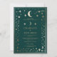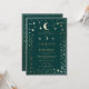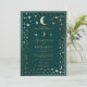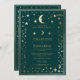—Esta invitación no es un verdadero Relieve metalizado de oro - es un diseño digital para aquellos que prefieren las descargas y la impresión no grabado en relieve. Sin embargo, el mismo artículo también está disponible en nuestra colección con Relieve metalizado oro real para un acabado brillante y grabado en relieve. Celebra a tu boda con esta invitación a la constelación celeste. Con un fondo verde índigo con estrellas de efecto dorado impresas, luna y detalles de constelación, le aporta un ambiente mágico y elegante a su día especial. En la parte trasera hay espacio para una foto de personalizable, lo que lo convierte en un toque personal para los clientes.