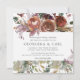 Nuestra invitación a una boda cuadrada Butterum & Plum anuncia los detalles del día de la boda con ricas y cálidas flores de moda boho en violeta morado, beige y marrón. Una elección elegante pero orgánica para los bodas de invierno y otoño con elementos botánicos intrincados.
