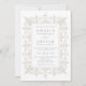 Palo y etéreo en una elegante paleta de colores de lino claro beige, gris de paloma y blanco crujiente, nuestra invitación a la boda de Marrakesh presenta un borde geométrico de estilo marroquí que enmarca los detalles de tu boda en típicas tipografías tradicionales. Las tarjetas cambian a un sutil patrón de diamante punteado.