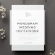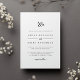 Personalice esta clásica y elegante invitación a la boda con su monograma o duograma junto con un guión decorativo. Agregue los detalles de su boda debajo con letras negras intemporales con acentos de escritura caligráfica. Una hermosa elección en blanco y negro clásico para bodas formales en cualquier temporada.