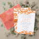 Invitación a la boda cuadrada elegante Naranja ventilado Damask - Se muestra con letras Naranjas y grises pero se elige el color de las fuentes de casi 200 colores! También se muestra con el RSVP en el frente - si prefiere un RSVP separado vea el tamaño 5 x 7 por debajo-