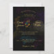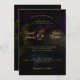 Invitación a la Boda en Monograma Floral Oscura. Parte de la colección Amber Wedding Invitation Suite. Flores y Monogramas de Moody Oscuros. El texto dorado es totalmente personalizable. Flores iluminadas. Fondo negro oscuro con flores descoloridas.