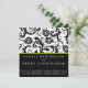 Vintage Patrones modernos de damasquinados florales en blanco y negro con invitaciones de Apple Green Trim Wedding. Perfecto para el barroco rococó, Bodas victorianos o elegantes recintos temáticos de Boda de una granja.