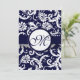 Invitación a la boda de Navy Damask Swirls