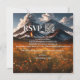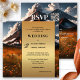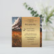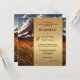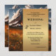 Una invitación nupcial única de otoño con una fantástica escena paisajística con coloridas flores caídas y un volcán activo. Detrás de los textos se usa un elegante panel de oro. En la parte posterior hay un código QR opcional con información RSVP. (puede borrarlo fácilmente si no lo necesita). Hermoso para una pareja atrevida.