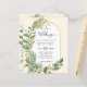 Hojas verdes modernas con acentos dorados invitan a la boda temática, arco moderno.
