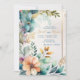 Elegante melocotón suave y florido verde azulado, con tonos verdes y un toque de oro componen esta bonita invitación a la boda. Con Fuentes Modernas De Escritura De Tipografía. Una playa tropical de verano, boda de destino, invitaciones de boda personalizadas.