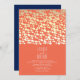 Elegante, moderna caligrafía, coral de playa tropical y invitación de boda azul marino con patrón de pez dorado. La elección perfecta para los bodas de verano contemporáneos.