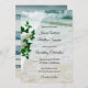 Una encantadora invitación a la boda con flores de orquídea en un velo boda que da a una playa con un romántico encaje y perlas. El encaje de la parte posterior es opcional. Esta invitación tiene una tarjeta RSVP correspondiente. Hermoso para una boda de playa o destino.