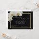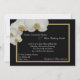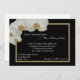 Elegante invitación de boda negra, con acentos dorados amarillos. Un conjunto de hermosas flores de orquídea blanca decora la esquina superior izquierda con un fondo negro. Un marco amarillo dorado alrededor del área de texto acentúa el amarillo, en las orquídeas. Todo el texto está en personalizable y listo para personalizar para su día especial. Productos bodas a juego disponibles.