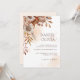 Invite a sus seres queridos a celebrar su día especial con esta encantadora invitación a una boda con temática de otoño. Con delicadas flores de acuarela en cálidos tonos otoñales, este diseño refleja perfectamente la elegancia rústica y la belleza natural de la temporada. La disposición, sencilla pero sofisticada, permite que los detalles bodas brillen, mientras que las texturas sutiles y los tonos tierra crean un ambiente cálido y acogedor.