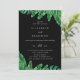 Esta jugosa Invitación a la Boda Tropical con hojas de palma silvestres combinadas con hojas de monastera tropical es perfecta para un boda de verano. El texto de la invitación está hecho con una letra manuscrita de color blanco sobre fondo negro que complementa perfectamente el frondoso follaje tropical verde salvaje. Fácil y conveniente de personalizar. ¡Añade tu texto y ya has terminado!