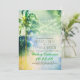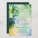 Color romántico de la acuarela - oscura invitación a la boda en la playa con palmeras de ensueño y luces de trineo - increíble invitación a la boda de destino tropical - para boda con tonos verdes y amarillos.