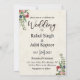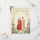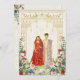 Un hermoso ilustracion digital sin rostro de una pareja india que se casa con brillantes tonos de rojo y oro y elegantes flores en la frontera, incluye personalización .