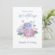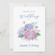 Invitación de Boda Pastel Hydrangea Flowers diseñada con grupos de flores dulces Pastel Hydrangea sobre un fondo blanco suave y texto azul. El texto principal incluye: Por favor Únete a nosotros para el Boda de, y los nombres de la novia y Groom. El texto de la parte inversa incluye: los nombres completos de la novia y del novio, la fecha de Boda, la hora, la ubicación, el nombre y la dirección de la recepción y la información de la recepción. Para personalizar, simplemente inserte sus detalles en nuestra plantilla sencilla, reemplazando el texto de ejemplo. Asegúrese de ver toda la colección de Bodas de flores de Pastel Hydrangea para la correspondencia entre papel y accesorios.
