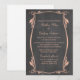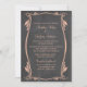 Elegante y a la moda Flourish Chalkboard Wedding Invitation con un toque de pizarra y un elegante borde de estilo Art Decó con flores y hojas en durazno. Fácil de personalizar, simplemente añada los detalles de su boda. Haga clic en "Personalizar" para encontrar más opciones de personalización.