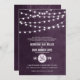 Moda diseño moderno de invitación a bodas de verano con elegantes y sencillas lámparas de cuerda que cuelgan por encima y una elegante mezcla de fuentes de escritura modernas y caligráficas sobre un fondo de textura falso color de agua. Un diseño sencillo y elegante, perfecto para el verano. Haga clic en el botón IT PERSONALIZAR para personalizar de fuentes, mueva el texto y cree su propio diseño único de invitación.