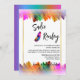 Mi nuevo diseño de Invitación presenta un colorido fondo con temática de plumas de arcoiris que le da un ambiente vibrante a su diseño de plantillas, con un borde falso dorado para elevar todo el asunto. La parte posterior de la tarjeta tiene un gradiente colorido para dar un efecto divertido. Usted puede personalizar este producto como su propio producto.