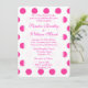 Diseño de impresión de puntos de polka rosa y blanca para tus invitaciones a la boda. Ponga los nombres de la novia y del Groom por un lado, dándole a sus invitaciones un ambiente menos formal. Por otro lado, la información pertinente del boda añade un toque clásico. Puede cambiar fácilmente el texto. Si necesitas ayuda o quieres algo diferente, por favor envíame un mensaje. Estoy disponible para solicitudes. Al hacer las invitaciones, compruebe tres veces la ortografía y las fechas.