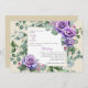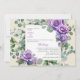 Agradables rosas morados y hojas de eucalipto enmarcan tu invitación a la boda y necesitan saber información que produzca una invitación preciosa para la familia y amigos.