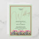Una mezcla perfecta de sofisticación y encanto Haga que sus invitaciones a la boda sean tan memorables como su gran día con la Elegante Invitación a la Boda Rosa Verde Mint Floral. Este diseño captura la esencia de la belleza intemporal y la elegancia moderna, marcando el tono perfecto para su celebración especial. La sofisticada paleta de colores de la casa destaca por su refrescante base verde menta que crea un entorno tranquilo y elegante, mientras que los toques de Relieve metalizado dorado subió le dan un toque de lujo y refinamiento. La combinación es moderna y atemporal. Detalles florales encantadores Los motivos florales intrincados complementan el diseño, creando un ambiente romántico y caprichoso. Perfecto para bodas con temas de jardín, botánico o vintage. Relieve metalizado dorado Rosa lujoso El brillante Relieve metalizado de oro de rosa resalta nombres, fechas o elementos decorativos, asegurando que la invitación se vea y se sienta de primera. Está diseñado para impresionar a sus huéspedes desde el momento en que lo reciben. Perfection personalizada Personalizar la tarjeta con tus nombres, detalles de bodas e incluso un mensaje sincero para coincidir con tu historia de amor única. La disposición y el diseño pueden adaptarse a sus preferencias. Ideal para bodas de jardín al estilo Boda: realza las celebraciones al aire libre o con temática floral. Elegantes recintos interiores: complementa sofisticados escenarios de baile o de finca. Eventos de primavera o verano: perfecto para ocasiones cálidas y alegres. El diseño fresco y elegante refleja la atención de la pareja por los detalles y el estilo. No es solo una invitación, es un placer para ellos. Conéctalo con: Coincidiendo con las tarjetas RSVP y de agradecimiento con la coordinación de los acentos florales y de Relieve metalizado. Elegantes recubrimientos de sobres de color verde menta o dorado rosa para una presentación sin fisuras. Sellos de cera, envolturas de terciopelo o cintas de satén para un toque adicional de sofisticación. La elegante Invitación de Boda Rosa Floral Mint Green combina el lujo moderno con el encanto natural, por lo que es la elección perfecta para anunciar su día de boda inolvidable con estilo.