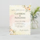 Admire el bonito estilo boho con esta invitación a la boda, fresca y de bonito. Con suaves tonos pastel en un estilo acuático, con melocotón y rosa amarillo, este romántico diseño le da un toque rústico a su próxima celebración boda. Simplemente haga clic en 'Personalize' para añadir fácilmente sus nombres, lugar, fecha y hora. Este diseño es ideal para bodas tipo boho, bodas de estilo rústico y bodas en el jardín.