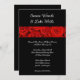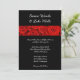 Esta romántica invitación a una boda clásica se muestra en un color negro con bonitas rosas rojas con un diseño escrito formal y texto en un guión que destaca los nombres de la novia y el Groom. El papel que se muestra es el Personalizar mate de esta invitación de boda haciendo clic en el botón personalizar, mire a la derecha para encontrar los cuadros de texto, cambie el texto en los cuadros apropiados para añadir su información.