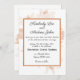 Invitación a la boda floral con acuarela personalizada. El diseño con azulejos de tigre blanco en el dibujo acuarela con color melocotón claro. Ver los elementos coincidentes en la "Colección de Bodas Rubor del Naranja White Tiger Lilies". Por favor, contáctame si tienes alguna solicitud con respecto a este diseño. Es para mí un placer hacer que su boda se convierta en un momento inolvidable.