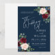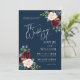 Invitación a Boho Navy Burgundy y Rubor Floral Wedding. Esta invitación se caracteriza por rosas de boho burgundy y rubia y flores con dos tipos de letra modernos de alta clase que moldean las tendencias de los eventos festivos presentes y futuros.