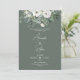 Celebre su día especial con esta moderna y elegante invitación a bodas verdes con sabores, que incluye un delicado arreglo botánico floral de eucalipto, rosas blancas y vegetación. El diseño minimalista y las fuentes de escritura elegantes crean un ambiente fresco y refinado perfecto para bodas en el jardín, ceremonias de otoño o eventos inspirados en la naturaleza. Este diseño combina simplicidad con sofisticación, ideal para parejas que aman los elementos naturales y una estética moderna. Todo el texto es editable al personalizar para su boda. 🌿 Aspectos destacados: Elegante fondo verde sabio Disposición floral superior: eucalipto, ranunculus blanco y rosas Combinación moderna de tipos de letra de serif y guion Adecuada para bodas minimalistas, botánicos o rústicos